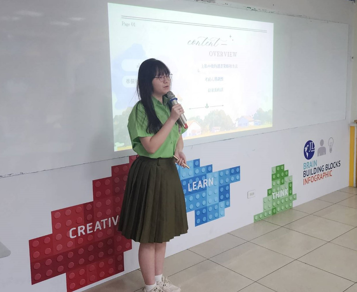 Mini 是美小班第二屆畢業的學姊,從小培養良好的時間規劃習慣讓她能在課業與生活中達到良好的平衡,成就真正的快樂學習。從分享過程中的侃侃而談和表達的自信看到成長的蛻變,真的要給Mini 一百個讚